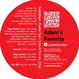 Adam’s Favorite is the candy of choice of one of our family founders. This selection adds a colorful, sweet filling to traditional licorice. It’s the go-to grub for those who seek an inventive indulgence. The bitterness and spice on the outside beautifully balance with the fruity center. The result is black licorice with a magical middle. Enjoy these mega flavors in a single bold bite.